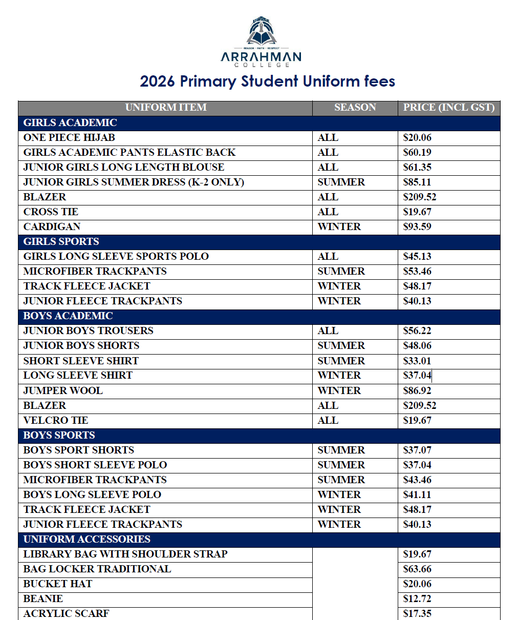 Our uniform is available for purchase at the College.